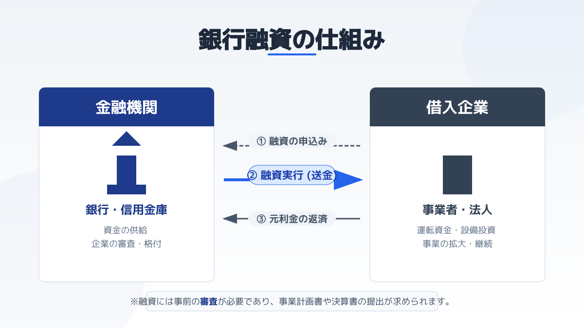 | 具体例・適した場面 | 売上の見通しが立つ実店舗の改装、実績のある広告運用費の拡大 | 赤字先行で数千万円のシステム開発を行うSaaS事業、急成長を狙うシード〜アーリー期 |