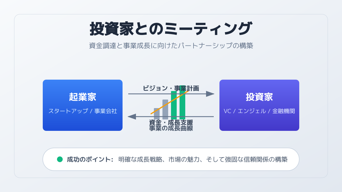 各成長フェーズにおける具体的な考え方については、スタートアップの資金調達を成功させる8つのポイント の解説も参考にしてください。資金調達の意味を正しく捉え、事業成長のエンジンとして活用するための第一歩を踏み出しましょう。