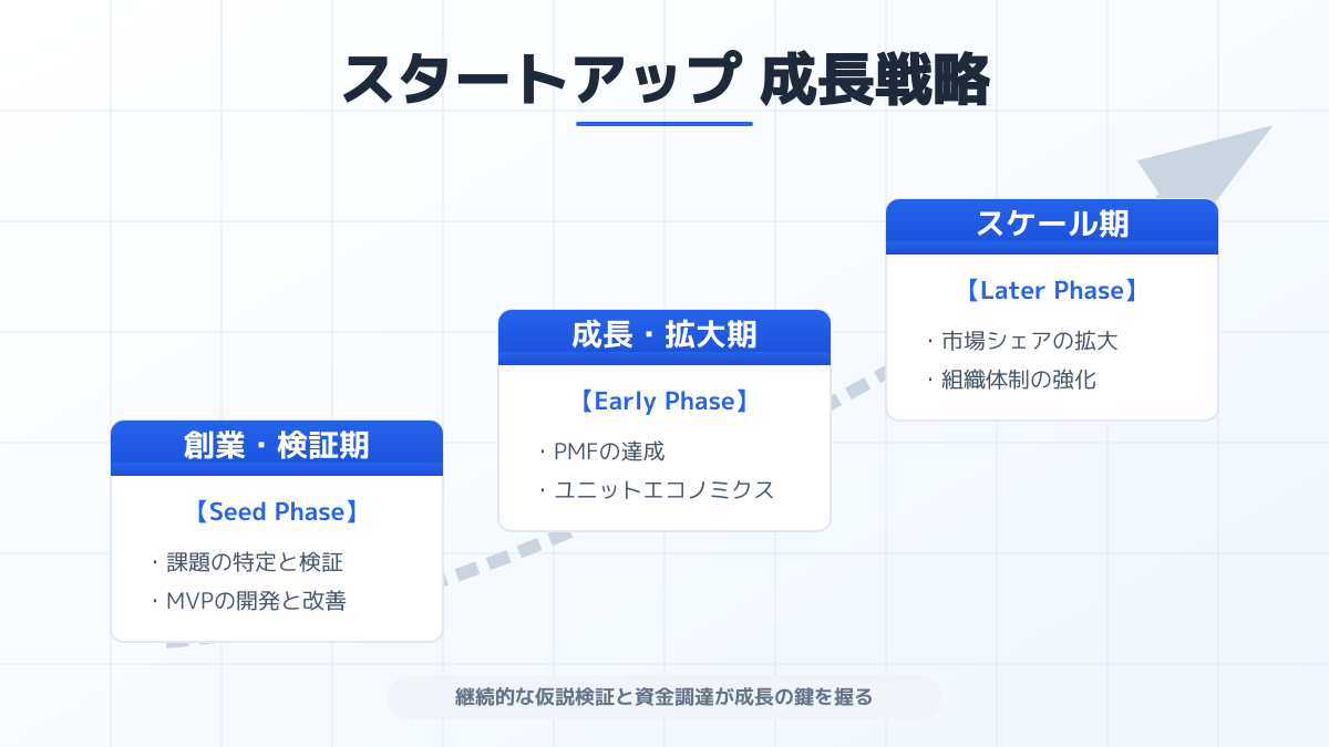 なお、プロダクトを本格的にグロースさせるフェーズでは、施策を実行するための投資も必要になります。グロース指標を資金調達にどう活かすかについては、スタートアップ資金調達の成功術!投資家を唸らせるグロースハックとKPI も併せて参考にしてください。