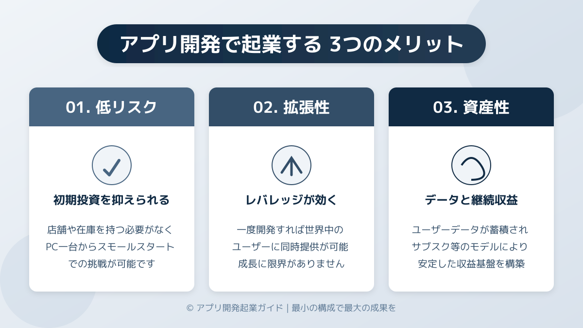 アプリやWebサービスの開発を通じて起業するには、まずビジネスの厳しい現実を知り、リスクを抑えたスモールスタートを徹底することが第一のポイントです。
