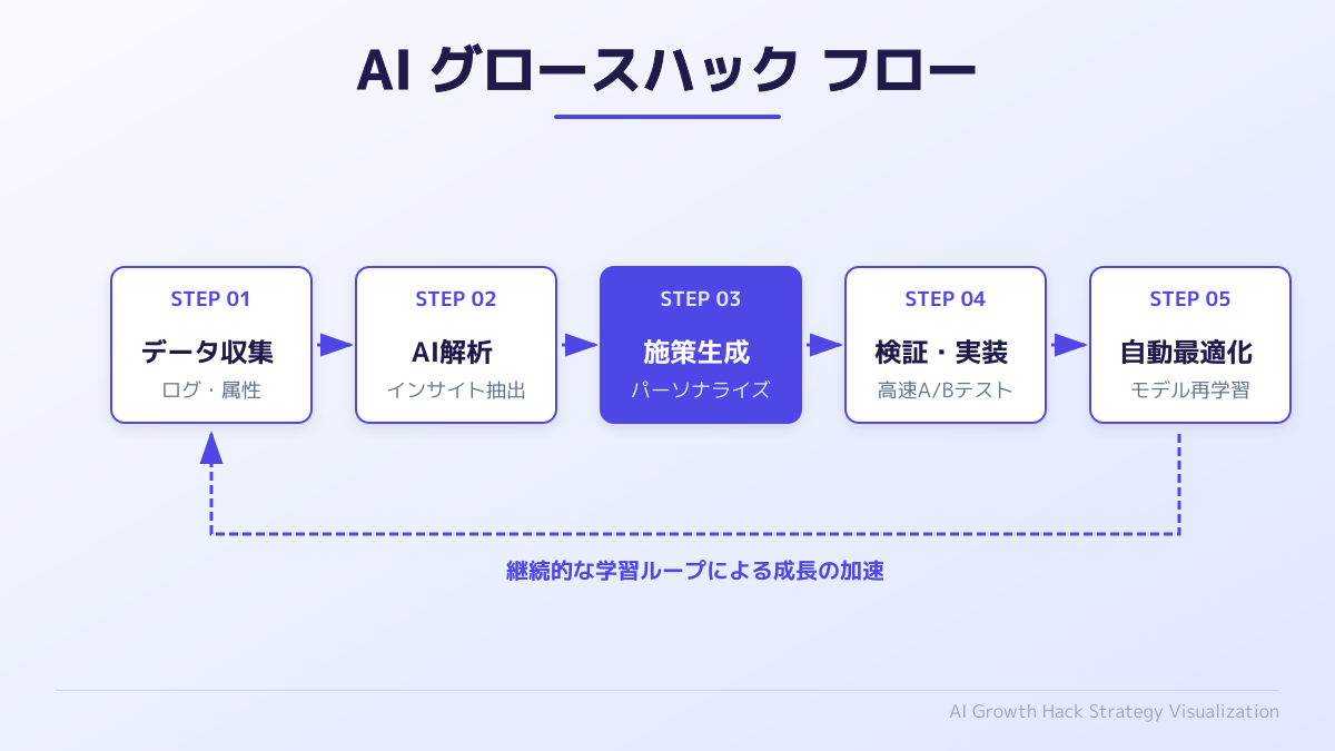 「グロースハックは古い」という見方もありますが、データに基づいた継続的な改善という考え方は、AIという強力なツールを得ることでより高速かつ高精度に実行できるようになりました。
