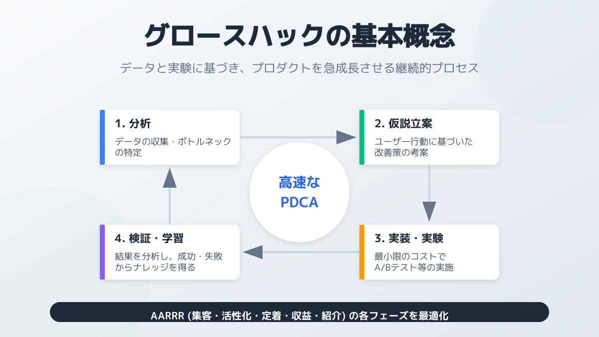 一部では「グロースハックはもう古い」という声を聞くこともありますが、その本質である「データに基づいた継続的な改善」は、AI時代においてむしろ重要性を増しています。第一の戦略は、データとAIを掛け合わせた仮説検証の高速化です。