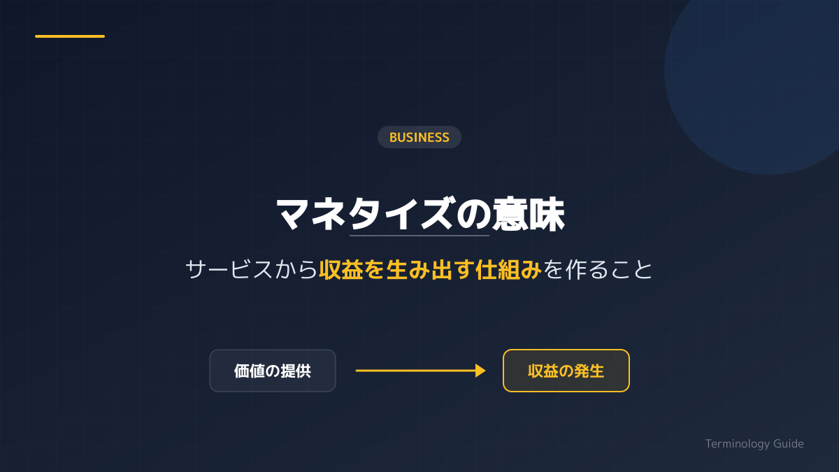 ITビジネスやアプリ開発の現場で頻繁に使われる「マネタイズ」という言葉は、本来「無収益の事業やサービスから、収益を生み出す仕組みを構築すること」を指します。新規事業を立ち上げる際、単に優れたアプリを作るだけでなく、このマネタイズの意味を正しく理解し、事業計画の根幹に据えることが不可欠です。