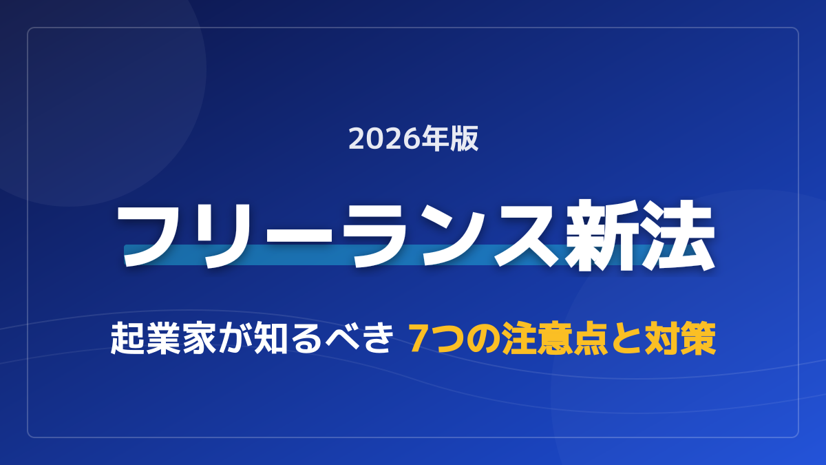 業務委託で法令違反を防ぐには?2024年施行のフリーランス新法(フリーランス保護法)について、発注者となる起業家向けにわかりやすく解説します。書面明示の義務や支払期日の60日ルールなど、業務委託で失敗しないための7つの注意点を網羅。そのまま使える取引条件のメール例文サンプルも提供します。
