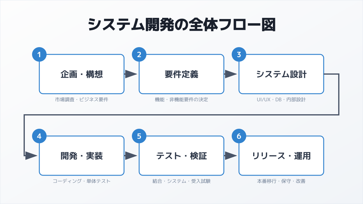 システム開発の工程は多岐にわたりますが、発注者が流れの全体像を把握し、各フェーズで適切に関わることで、プロジェクトの成功確率は飛躍的に高まります。
